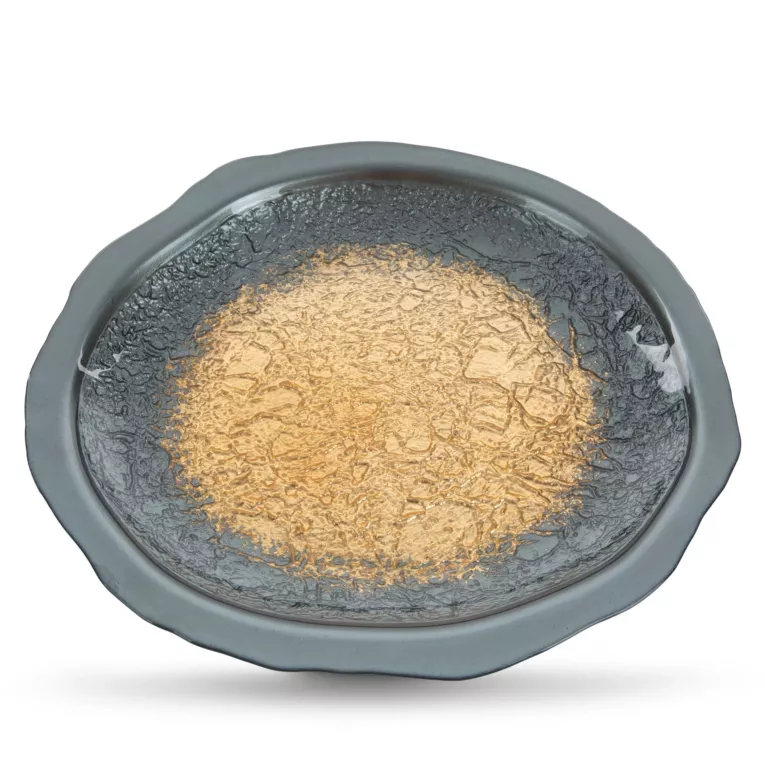 ABI stalowo złota patera ze szkła artystycznego z fantazyjnym wzorem 28x2 cm Eurofirany