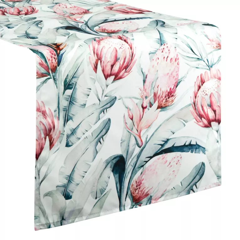 Stwórz wyjątkową atmosferę na swoim tarasie lub balkonie dzięki eleganckiemu bieżnikowi wykonanemu z wodoodpornej tkaniny. Jego powierzchnia ozdobiona jest pięknym motywem kwiatów, który wprowadza do przestrzeni świeżość i naturalny urok. Dzięki wodoodpornym właściwościom bieżnik jest odporny na wilgoć i zabrudzenia, co czyni go idealnym wyborem do użytku na zewnątrz. Stylowy, praktyczny i łatwy w pielęgnacji – doskonale sprawdzi się podczas letnich spotkań na świeżym powietrzu, dodając Twojemu stołowi elegancji i funkcjonalności.