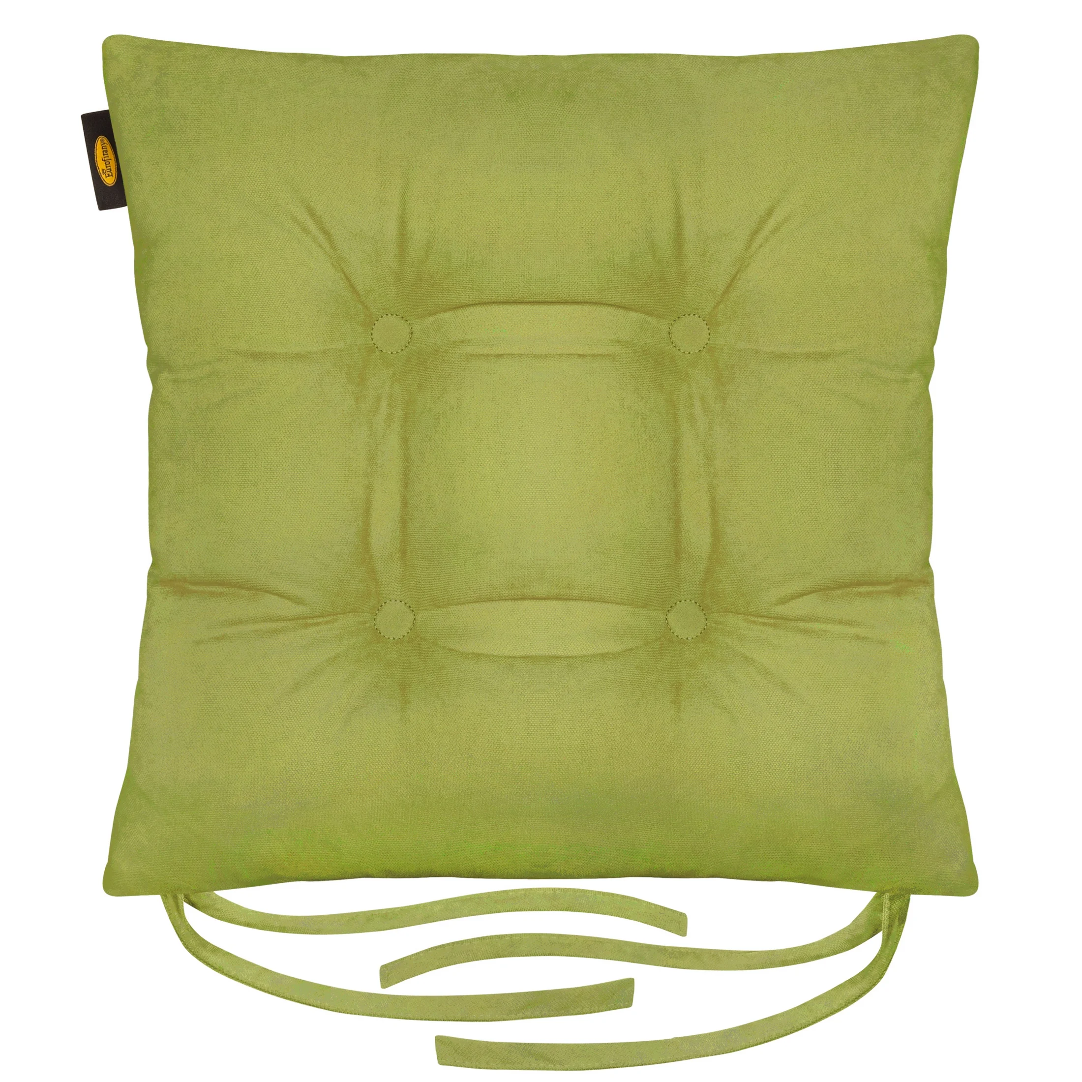 Poduszka na krzesło dwustronna 40 x 40 x 8 cm welwetowa oliwkowa z czterema pikowaniami Eurofirany