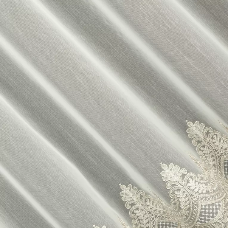 Firana szyta na taśmie fala kremowo złota z miękkiej tkaniny typu ADEN ozdobionej kordonkowym haftem