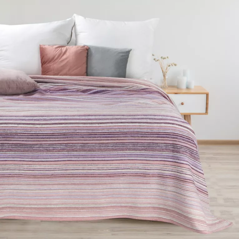 Koc bawełniany 200x220 cm różowo, wrzosowy ze strukturalnym wzorem 3D w pasy AMBER DESIGN 91 Eurofirany