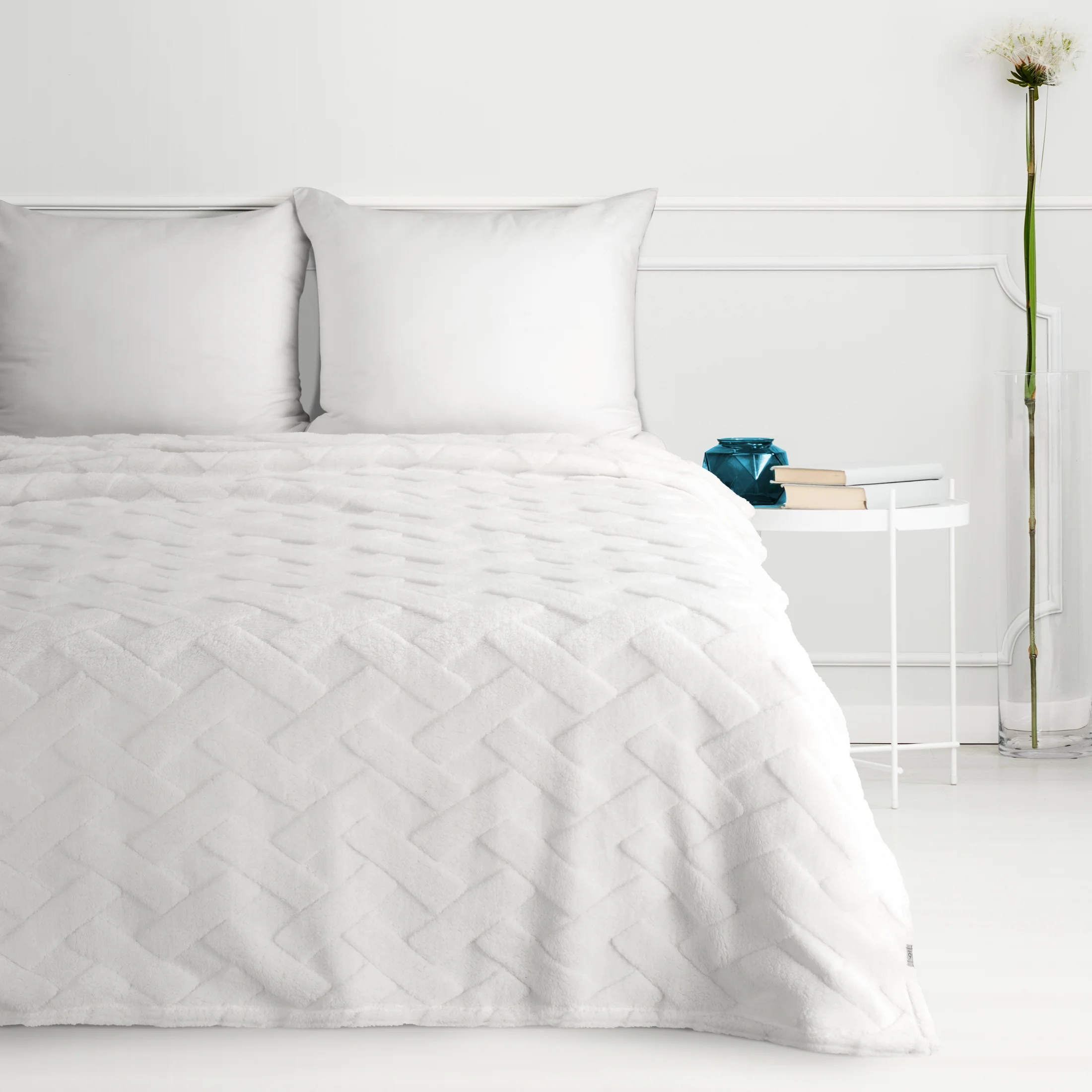 Narzuta na fotel-koc 70x160 cm biała z wytłaczanym wzorem pasów LISA DESIGN 91 Eurofirany