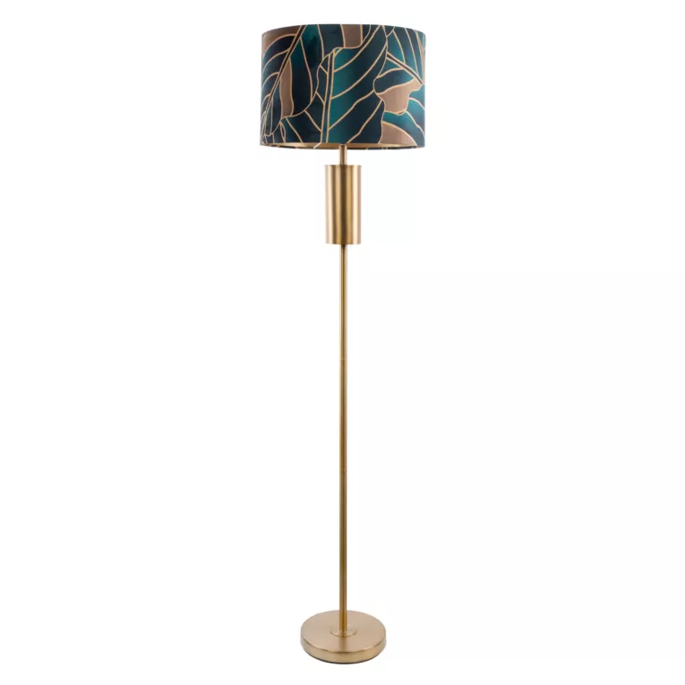 Niezwykła lampa podłogowa z limitowanej kolekcji Lili marki Eurofirany to zachwycający dodatek do wnętrza. Solidna, metalowa podstawa w kolorze matowego złota podkreśla urok abażuru z matowego welwetu. Szeroki abażur welwetowy zdobiony jest wzorem w botanicznym stylu. Ta niezwykła lampa dekoracyjna wnosi do wnętrza przytulne oświetlenie i ociepla atmosferę wnętrza.