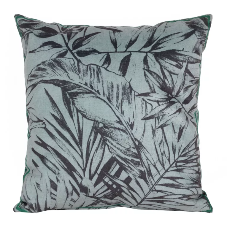 Poszewka na poduszkę 45x45 cm welwetowa z nadrukiem liści popielato, zielona MONTENEGRO 1 TERRA COLLECTION Eurofirany