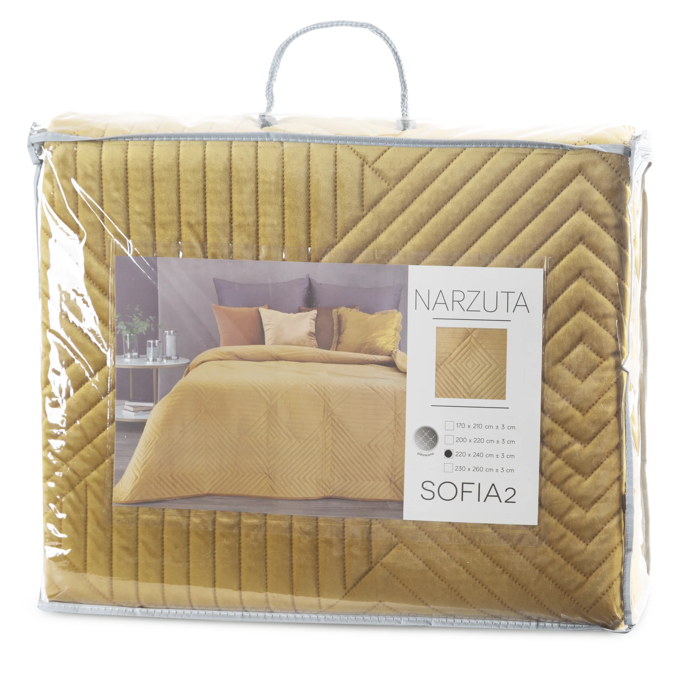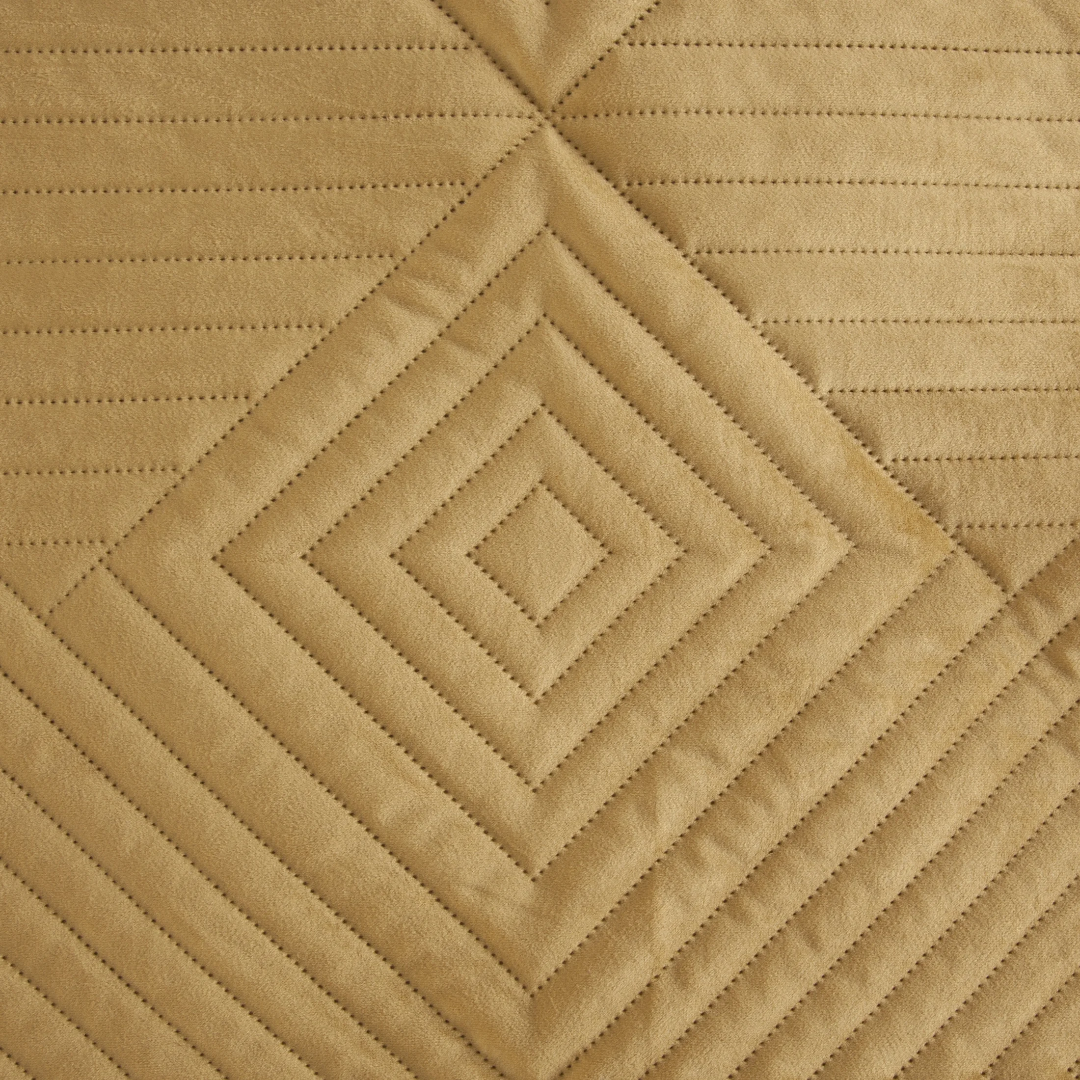 Efektowna narzuta na łóżko do sypialni uszyta została z ekskluzywnego, matowego welwetu. Miękka i przyjemna w dotyku narzuta na łóżko lub sofę doskonale prezentować sie będzie zarówno w sypialni jak i w salonie. Subtelne, pikowanie we wzór geometryczny wykonane nowoczesną metodą zgrzewania hot press podkreśla strukturę tkaniny welurowej. Spód wykonany z gładkiej miękkiej tkaniny.
