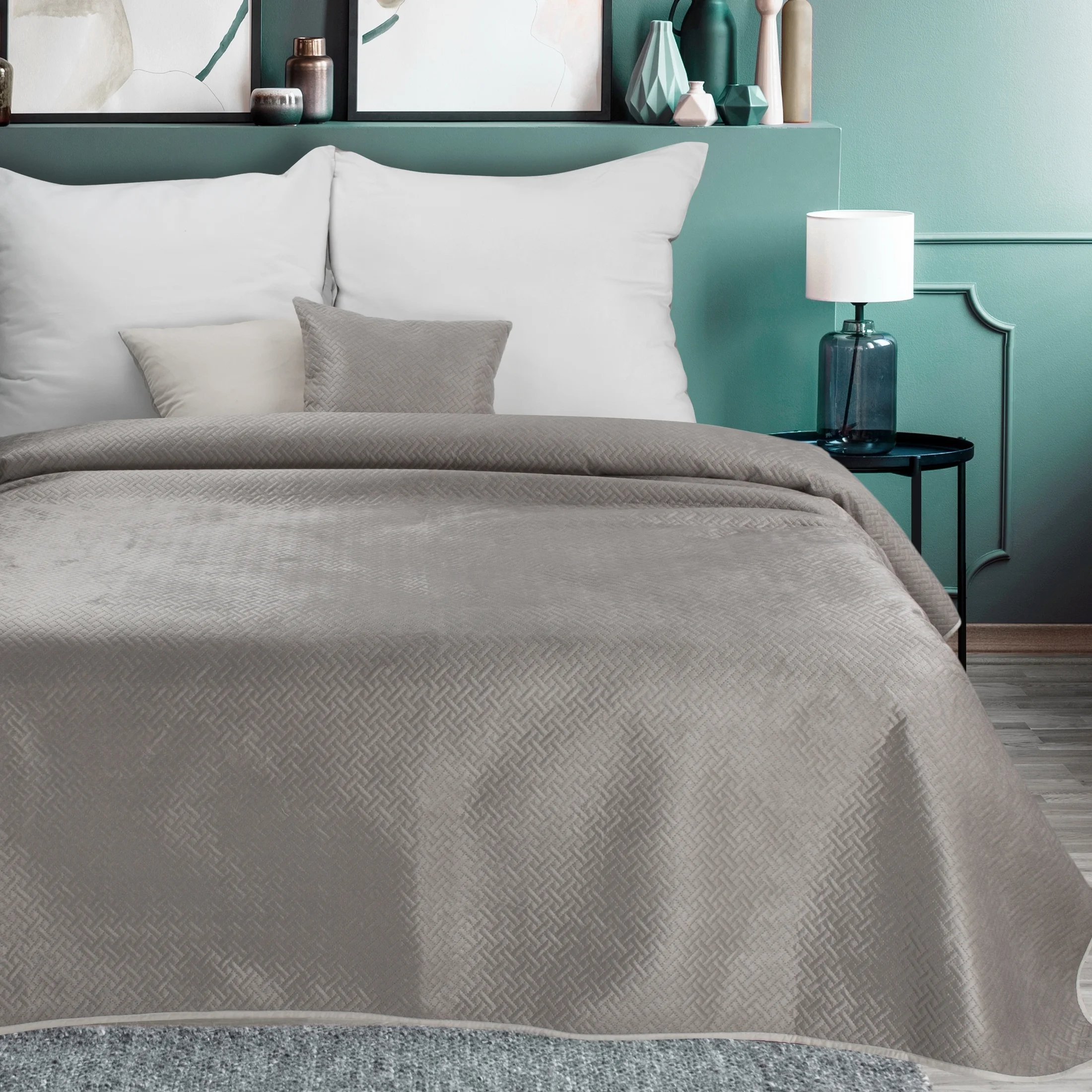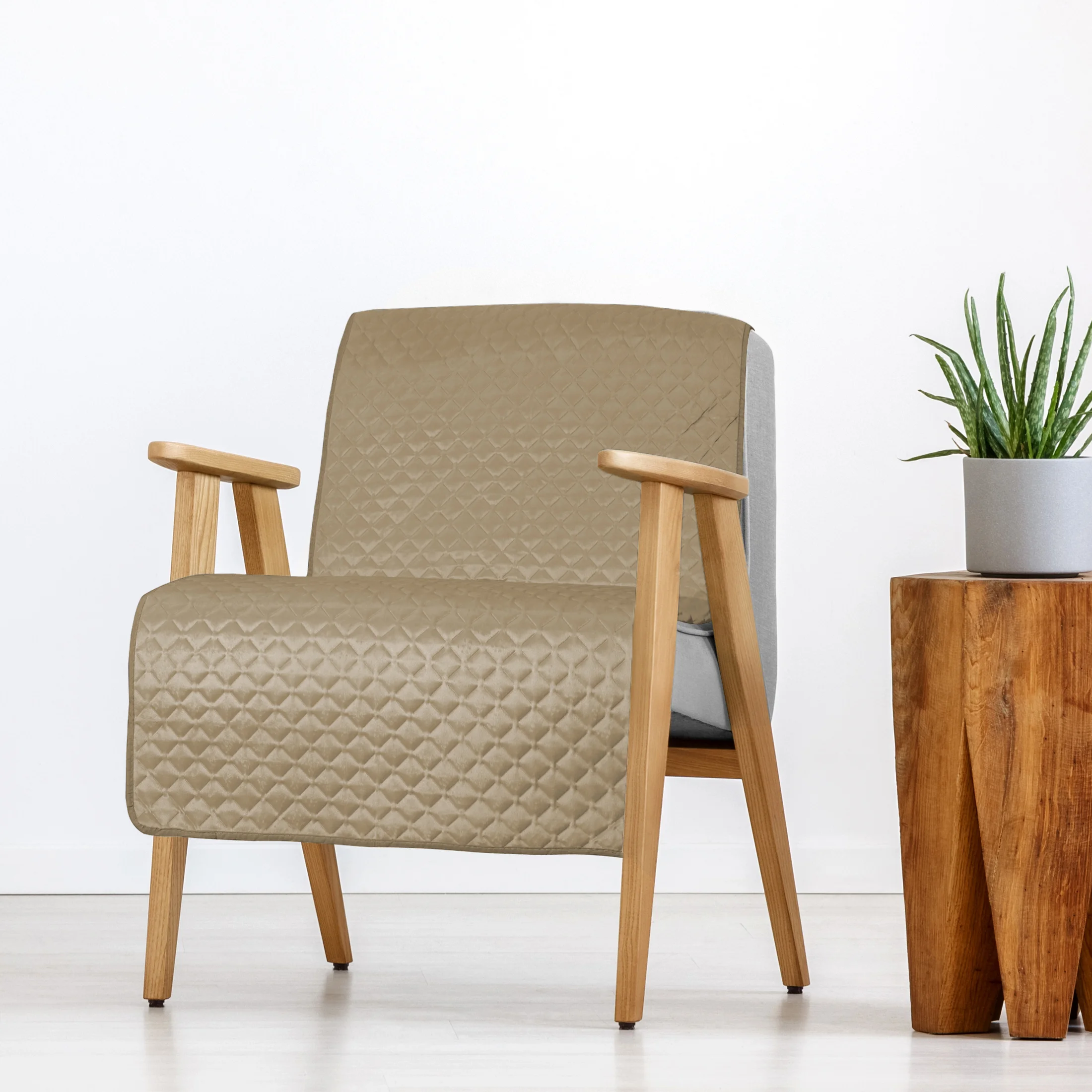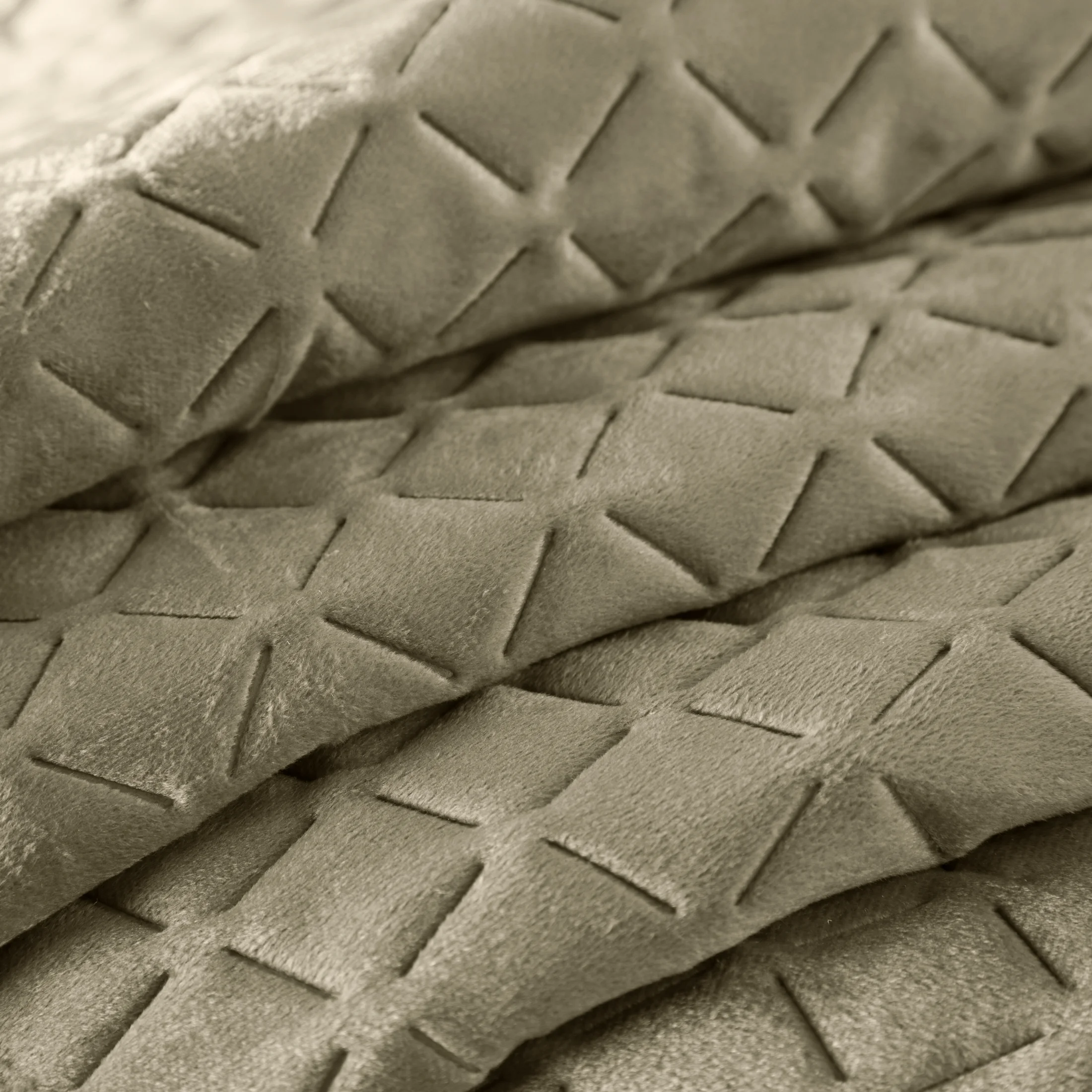 Efektowna narzuta na fotel uszyta została z ekskluzywnego, matowego welwetu. Miękka i przyjemna w dotyku narzuta na fotel doskonale prezentować sie będzie zarówno w sypialni jak i w salonie. Subtelne, pikowanie we wzór geometryczny wykonane nowoczesną metodą zgrzewania hot press podkreśla strukturę tkaniny welurowej. Spód wykonany z gładkiej miękkiej tkaniny.