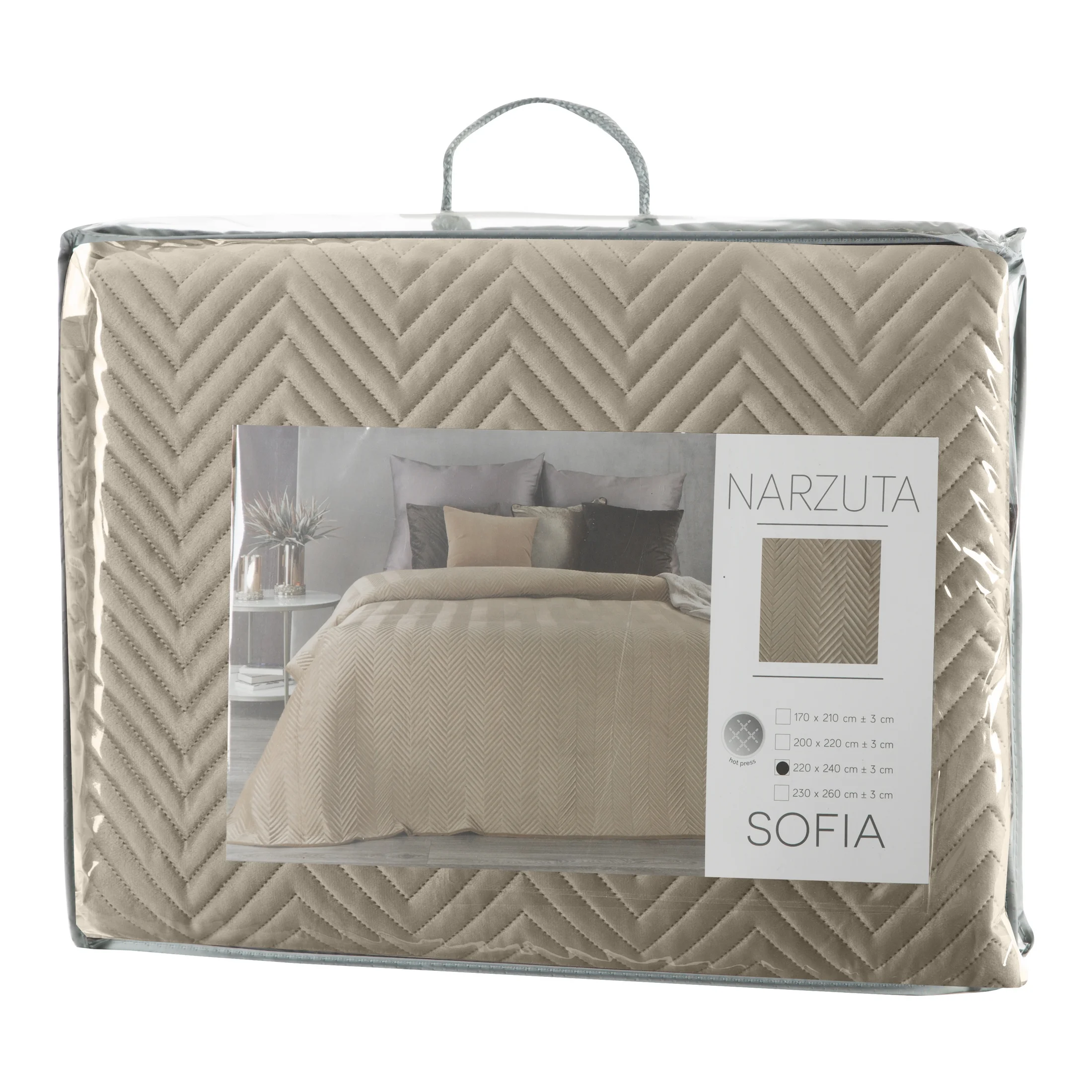 Narzuta welwetowa na fotel beżowa 70x160 cm pikowana metodą hot press z motywem rybiej łuski ARIEL EUROFIRANY CLASSIC