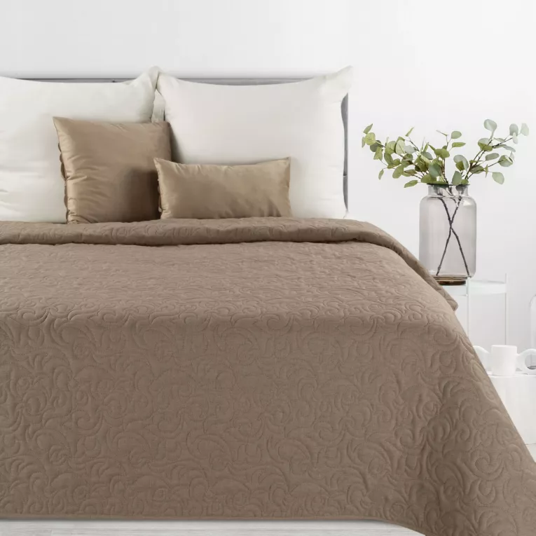 Narzuta z tkaniny imitującej len brązowa 200x220 cm na łóżko pikowana metodą hot press LENA 4 EUROFIRANY PREMIUM