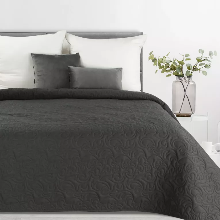 Narzuta z tkaniny imitującej len grafitowa 170x210 cm na łóżko pikowana metodą hot press LENA 4 EUROFIRANY PREMIUM