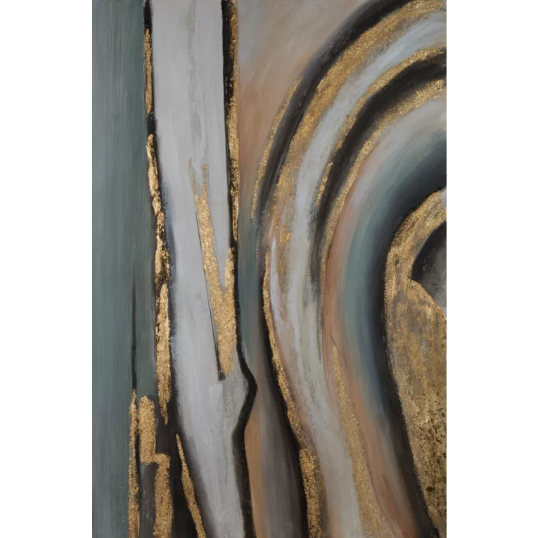 Każde wnętrze wzbogacone obrazami nabiera charakteru i wyjątkowego stylu. Ręcznie malowany na płótnie abstrakcyjny obraz, pozwala napuszczenie wodzy fantazji i interpretowanie go na własny sposób.  Obraz został wykonany ze starannością i dbałością o każdy detal. Kontrastujące i nachodzące na siebie barwy ze złotymi akcentami dodają mu głębi. Taka dekoracja świetnie podkreśla styl nowoczesnych i awangardowych wnętrz. Świetnie sprawdzi się w zestawieniu ze swoją bliźniaczą kopią, tworząc kompletną dekorację Twojego salonu.