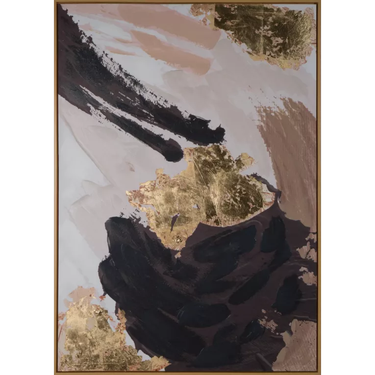 Każde wnętrze wzbogacone obrazami nabiera charakteru i wyjątkowego stylu. Ręcznie malowany na płótnie abstrakcyjny obraz, pozwala napuszczenie wodzy fantazji i interpretowanie go na własny sposób.  Obraz został wykonany ze starannością i dbałością o każdy detal. Kontrastujące i nachodzące na siebie barwy ze złotymi akcentami dodają mu głębi. Taka dekoracja świetnie podkreśla styl nowoczesnych i awangardowych wnętrz. Świetnie sprawdzi się w zestawieniu ze swoją bliźniaczą kopią, tworząc kompletną dekorację Twojego salonu.