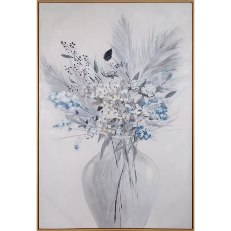 Prezentujemy wyjątkowy ręcznie malowany obraz na płótnie, przedstawiający elegancką kompozycję kwiatów w wazonie. Starannie dobrana kolorystyka i widoczne pociągnięcia pędzla nadają dziełu unikalny charakter, podkreślając jego artystyczną wartość.