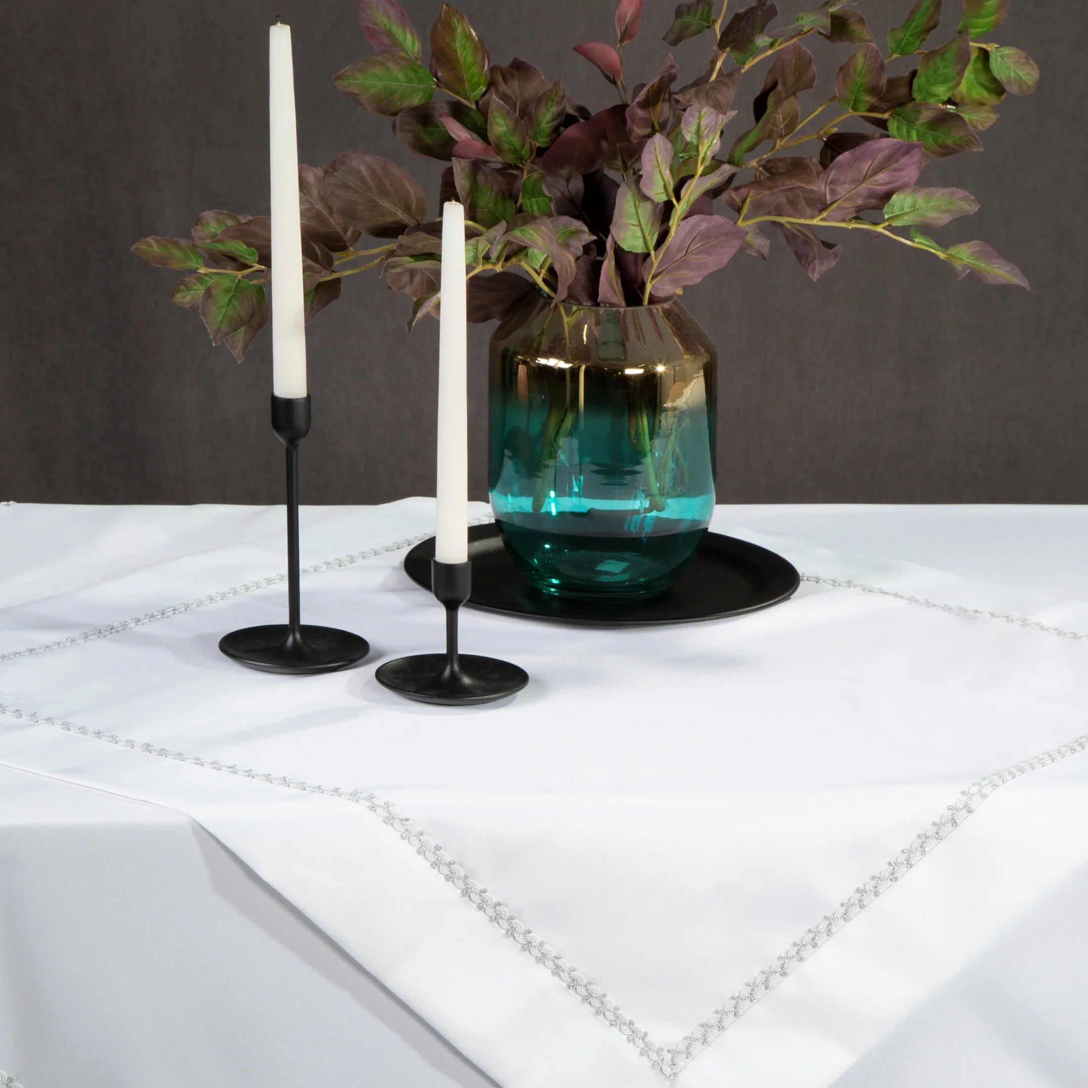 Bieżnik na stół biały 85x85 cm MADELE z delikatną srebrną wypustką