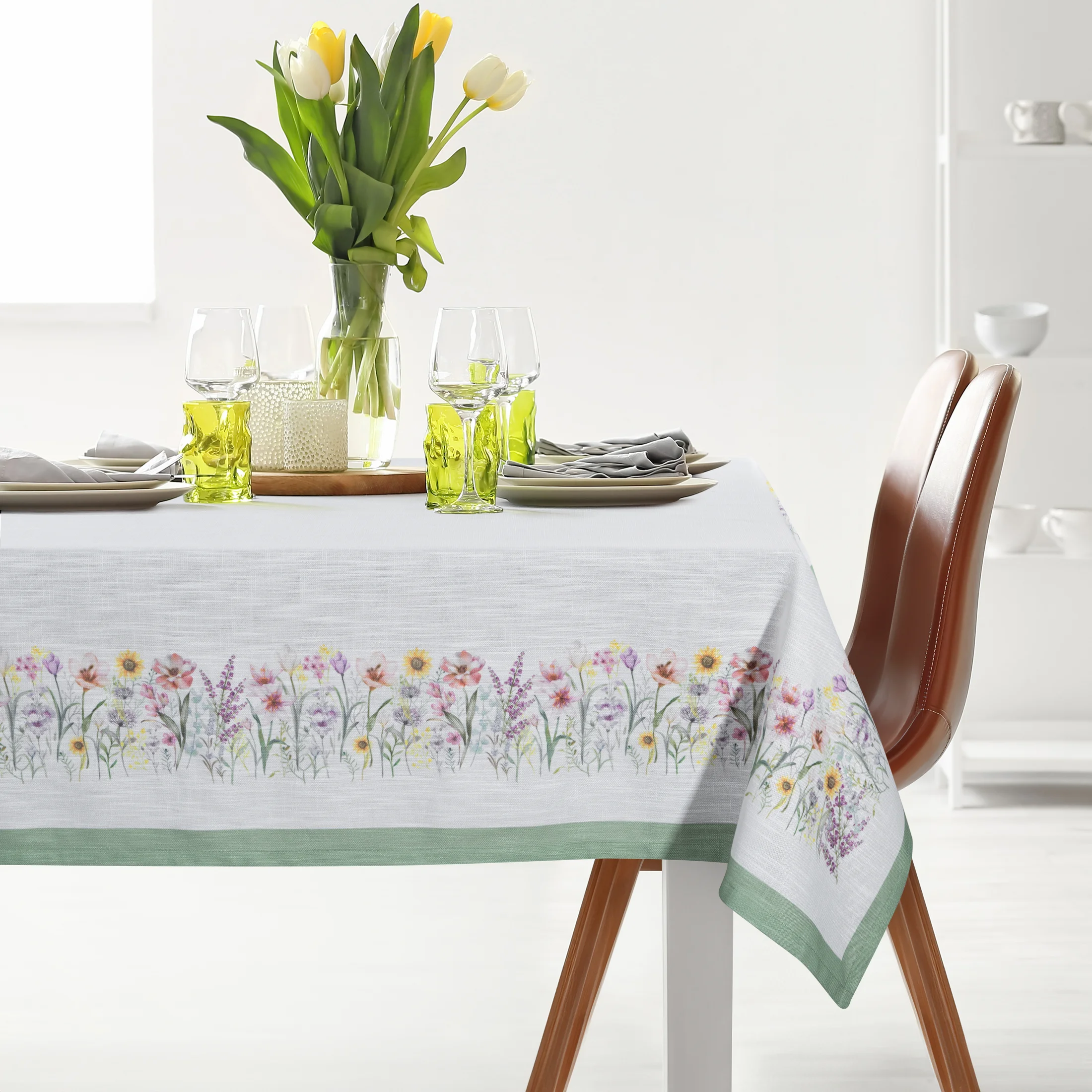 Obrus wykonany z miękkiej w dotyku tkaniny z nadrukiem kolorowych kwiatów, to dekoracja dodająca wnętrzu sielskiego klimatu. Wysoka jakość nadruku oraz wysokiej jakości tkanina gwarantują satysfakcję z produktu. Wzór kwitnących kwiatów znakomicie odświeża wnętrze, wprowadzając do niego pozytywny nastrój. Polecamy na prezent.
