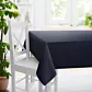 W przypadku wyboru obrusu zakrywającego brzegi stołu  zaleca się dopasowanie obrusu do wymiarów blatu uwzględniając/dodając od 20- 30 cm tkaniny zwisającej poza brzegi blatu.