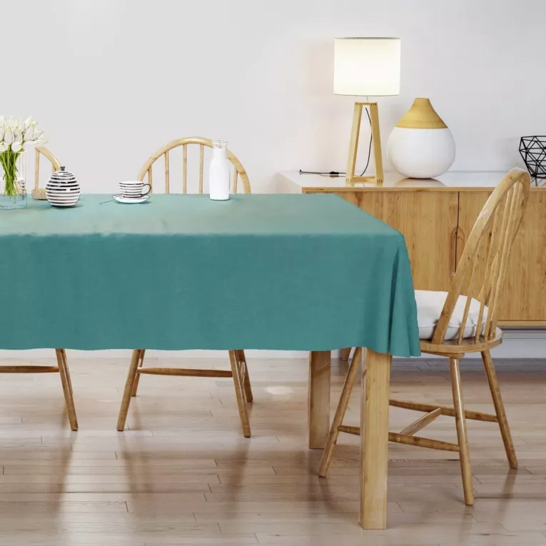 Obrus szyty ADESSA ciemnoturkusowy z miękkiej tkaniny o welurowej strukturze