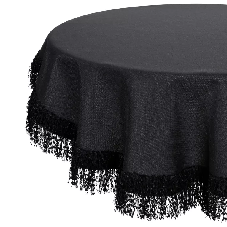Obrus okrągły czarny średnica 120 cm JASPER zdobiony puszystymi frędzlami EUROFIRANY PREMIUM