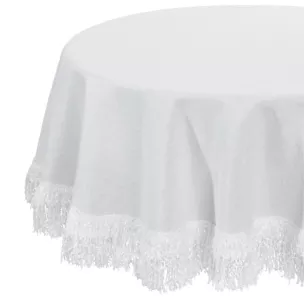 Okrągły obrus JASPER to idealna dekoracja dla stołu.  Dekoracyjny obrus zdobiony puszystymi frędzlami, idealnie wpasuje się do wnętrz nowoczesnych dodając im wyjątkowego stylu. Będzie świetną ozdobą salonu lub jadalni. Ciekawy wzór i stonowana kolorystyka sprawią, że z chęcią zasiądziesz przy stole podczas rodzinnego obiadu lub pijąc poranną kawę.