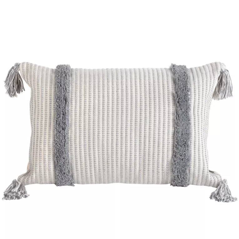 Poszewka na poduszkę 30x50 cm bawełniana zdobiona puszystymi pasami i chwostami na rogach PALERMO TERRA COLLECTION Eurofirany