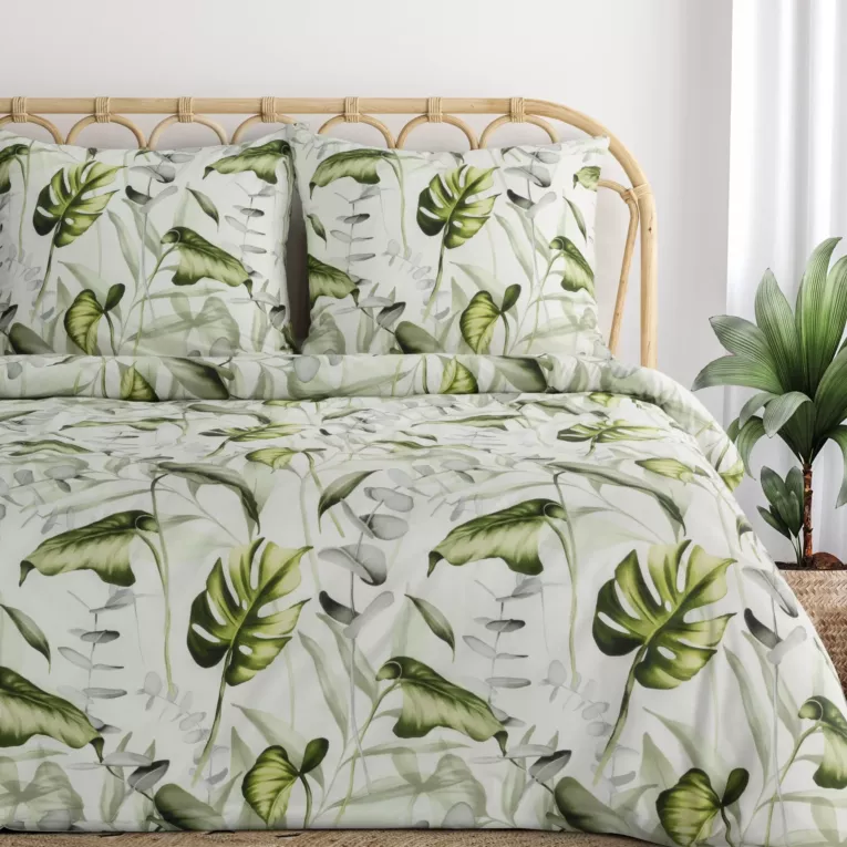 Pościel 140x200 cm bawełniana kolor biały, zielony z wzorem egzotycznych liści ELEN Eurofirany