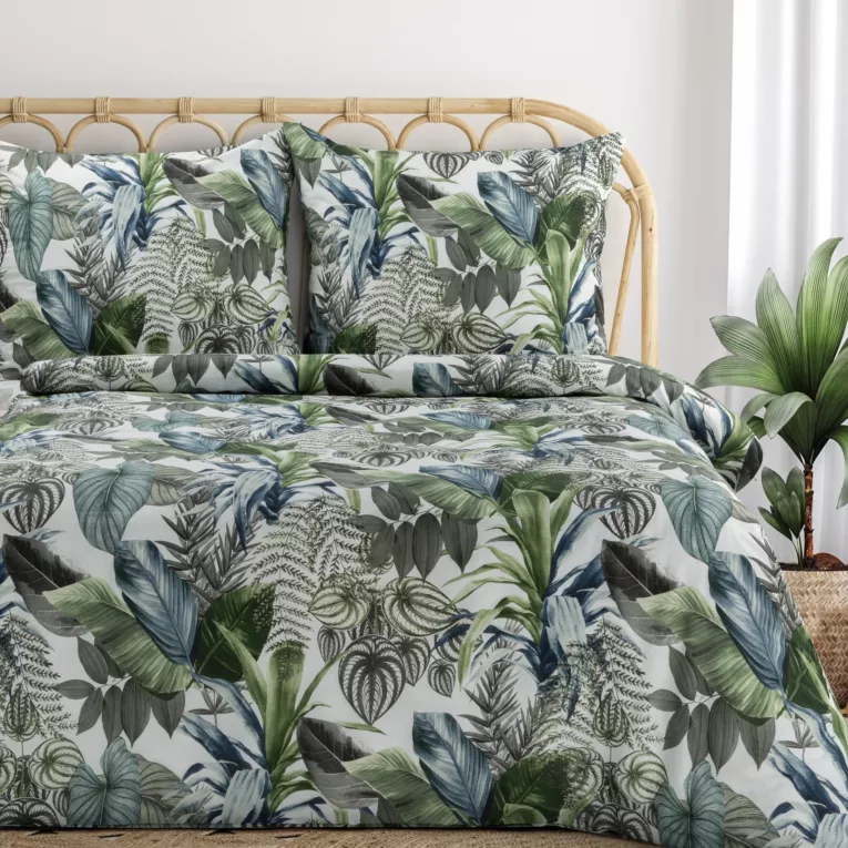 Pościel 140x200 cm bawełniana kolor zielony, biały z wzorem liści DAVOS Eurofirany
