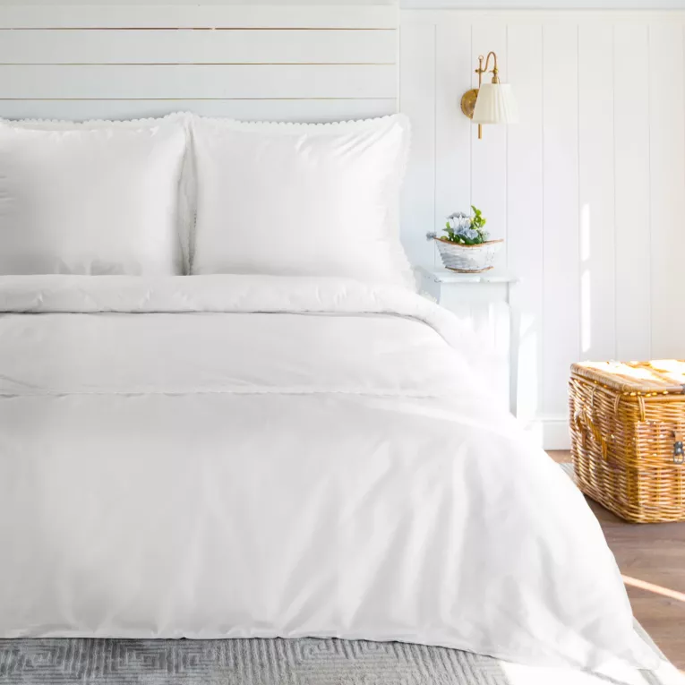 Pościel 160x200 cm z satyny bawełnianej kolor biały zdobiona elegancką koronką RETRO 6 Eurofirany