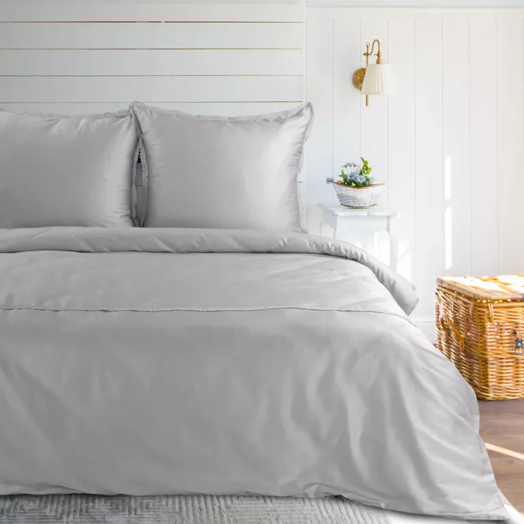 Pościel 220x200 cm z satyny bawełnianej kolor jasnoszary zdobiona elegancką koronką RETRO 5 Eurofirany
