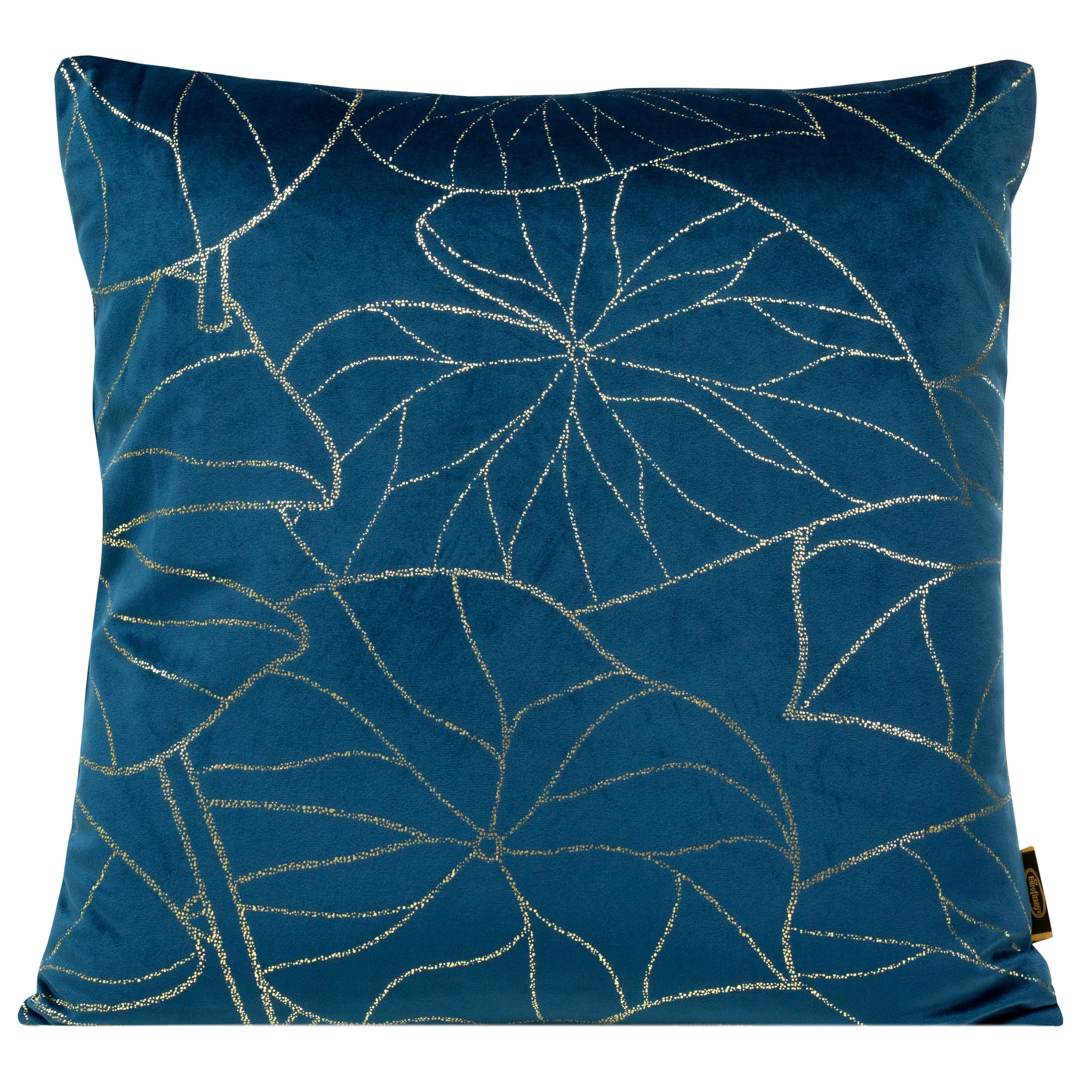 Poszewka na poduszkę 45x45 cm welwetowa zdobiona nadrukiem liści i elegancką lamówką na brzegach granatowo, zielona VELVET 107 Eurofirany