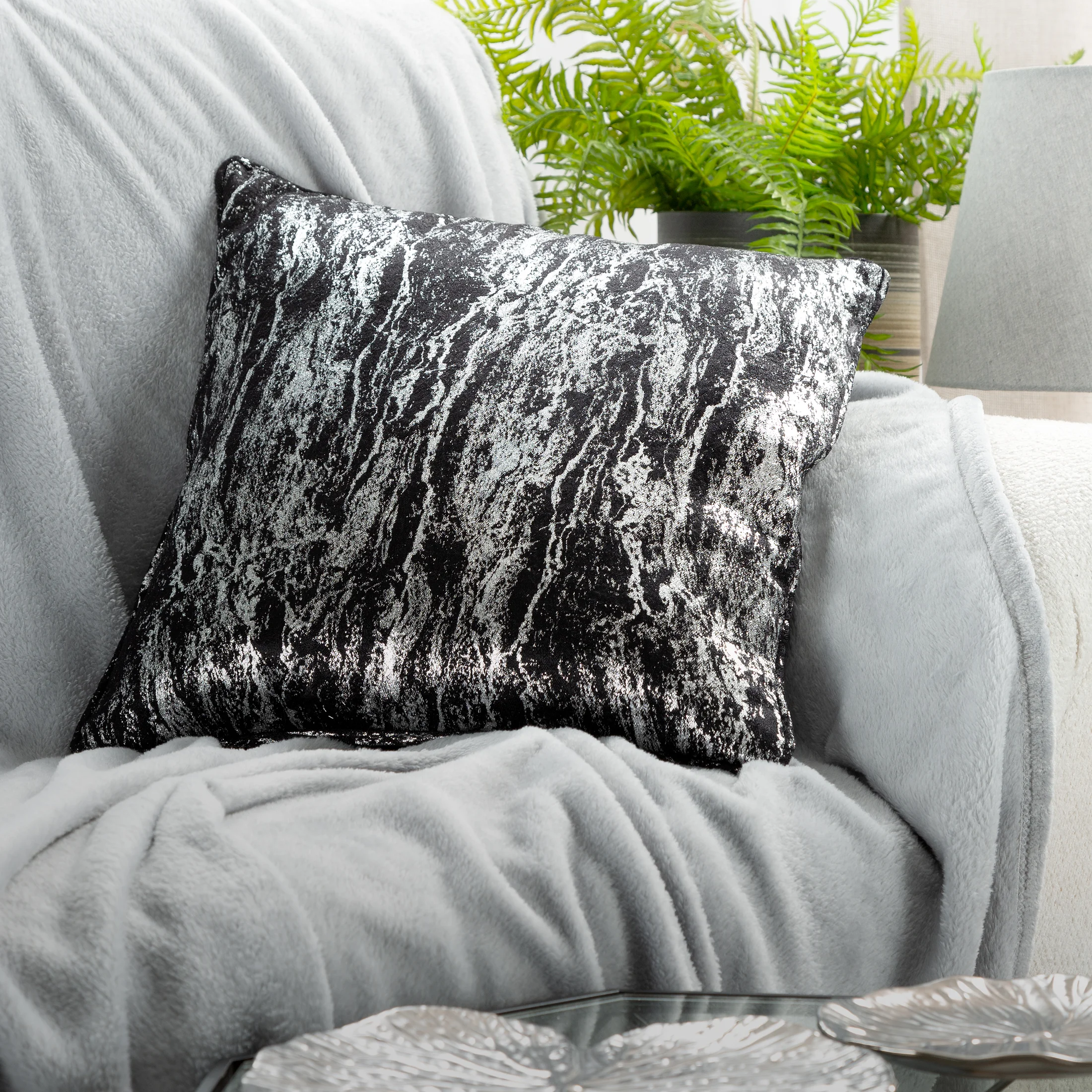 Poszewka na poduszkę 45x45 cm welwetowa zdobiona przecieranym nadrukiem czarno, złota EMILA Eurofirany