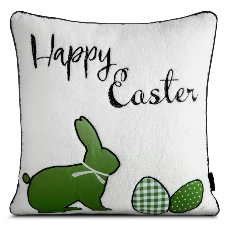 Poszewka na poduszkę 45x45 cm welwetowa z motywem wielkanocnym zielono, biała WIOSNA 5 Eurofirany
