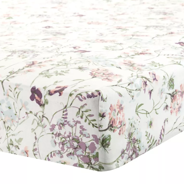 Prześcieradło z gumką 100x200 cm z bawełny kolor różowy,zielony z wzorem roślinnym 105 g/m2 PRINT Eurofirany