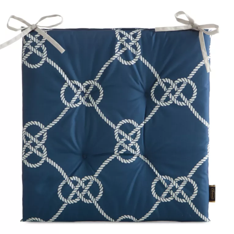 Poduszka na krzesło 43 x 43 x 4 cm wodoodporna granatowo, biała w stylu marynistycznym GARDEN Eurofirany