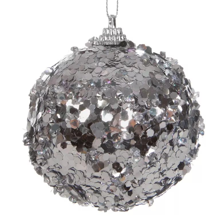 Srebrna bombka choinkowa nietłukąca z cekinami 8 cm Eurofirany