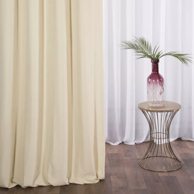 Gładka tkanina o miękkim, zamszowym chwycie; wizualnie ocieplająca i wyciszająca wnętrze. Jednolity, gładki odcień elegancko wpasuje się w Twoje wnętrze, dzięki dużej gamie kolorystycznej bez problemu znajdziesz odpowiedni odcień dla siebie. Tkanina po zawieszeniu bardzo ładnie się układa, tworząc miękkie i regularne fale. Grubszy materiał skutecznie ogranicza dopływ światła słonecznego.  Ze względu na brak wzoru i zdobień, tkaninę z łatwością dopasujesz do różnych koncepcji wnętrzarskich.  Prostota i elegancja zarazem z pewnością zachwycie Ciebie oraz Twoich gości.