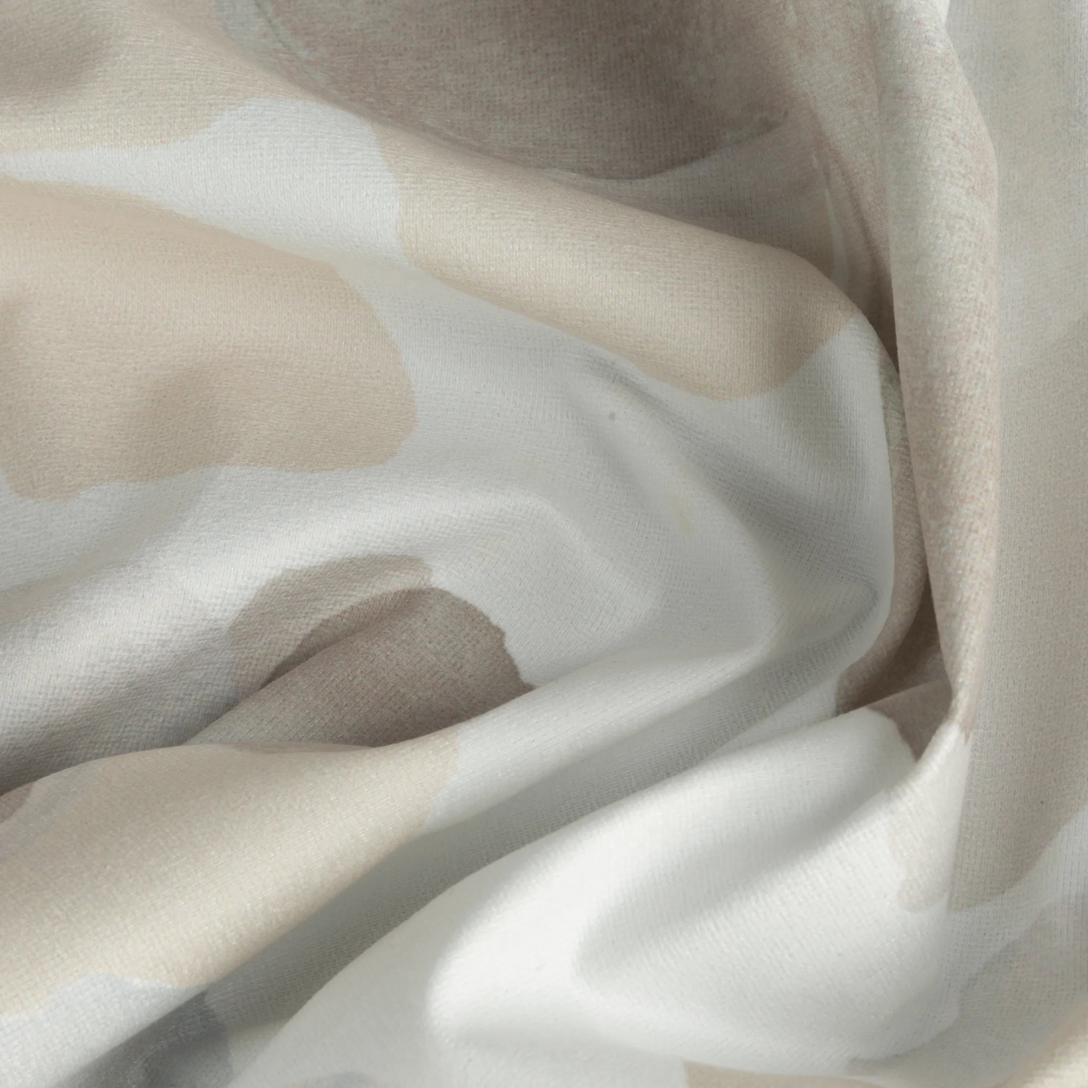 Tkanina welwetowa z nowoczesnym nadrukiem w formie marmurowego wzoru to idealne uzupełnienie nowoczesnego wnętrza. Grubsza tkanina o gęstym splocie dobrze chroni przed nadmiarem promieni słonecznych w ciągu dnia. Materiał welwetowy delikatnie odbija światło, dzięki czemu w zależności od pory dnia mieni się różnymi odcieniami. Zasłony to uniwersalna dekoracja pasująca zarówno do wnętrz klasycznych, jak i nowoczesnych. Tkanina po zawieszeniu na karniszu miękko się układa. Polecamy również na poszewki dekoracyjne.