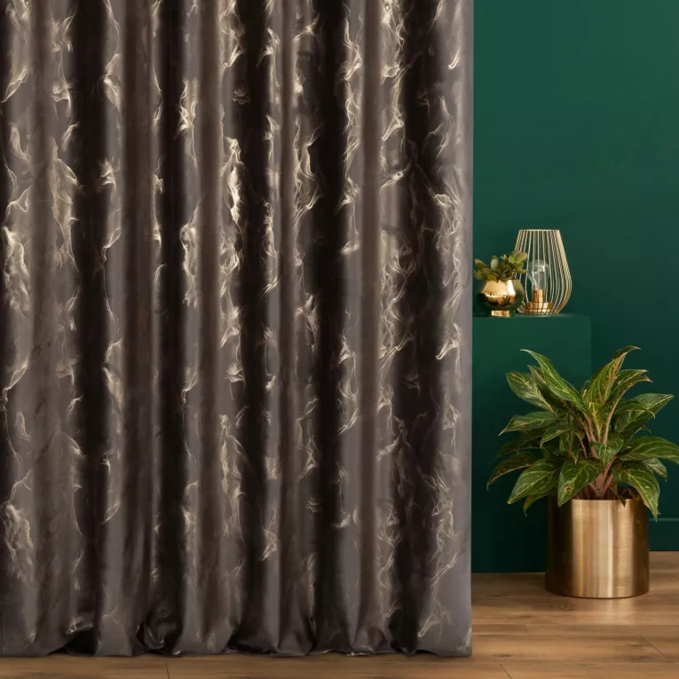 Tkanina zasłonowa welwetowa zdobiona złotym marmurkowym wzorem Eurofirany