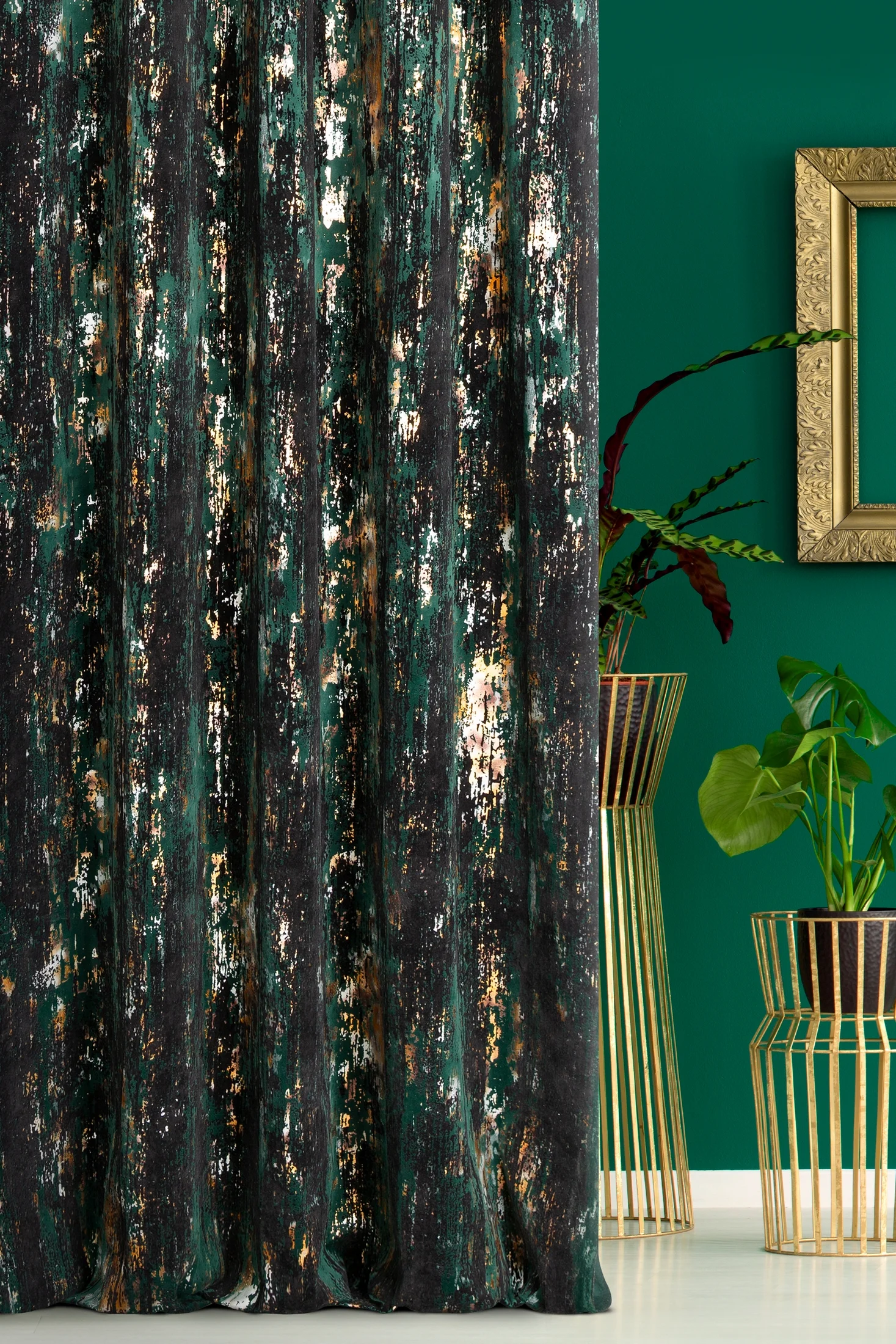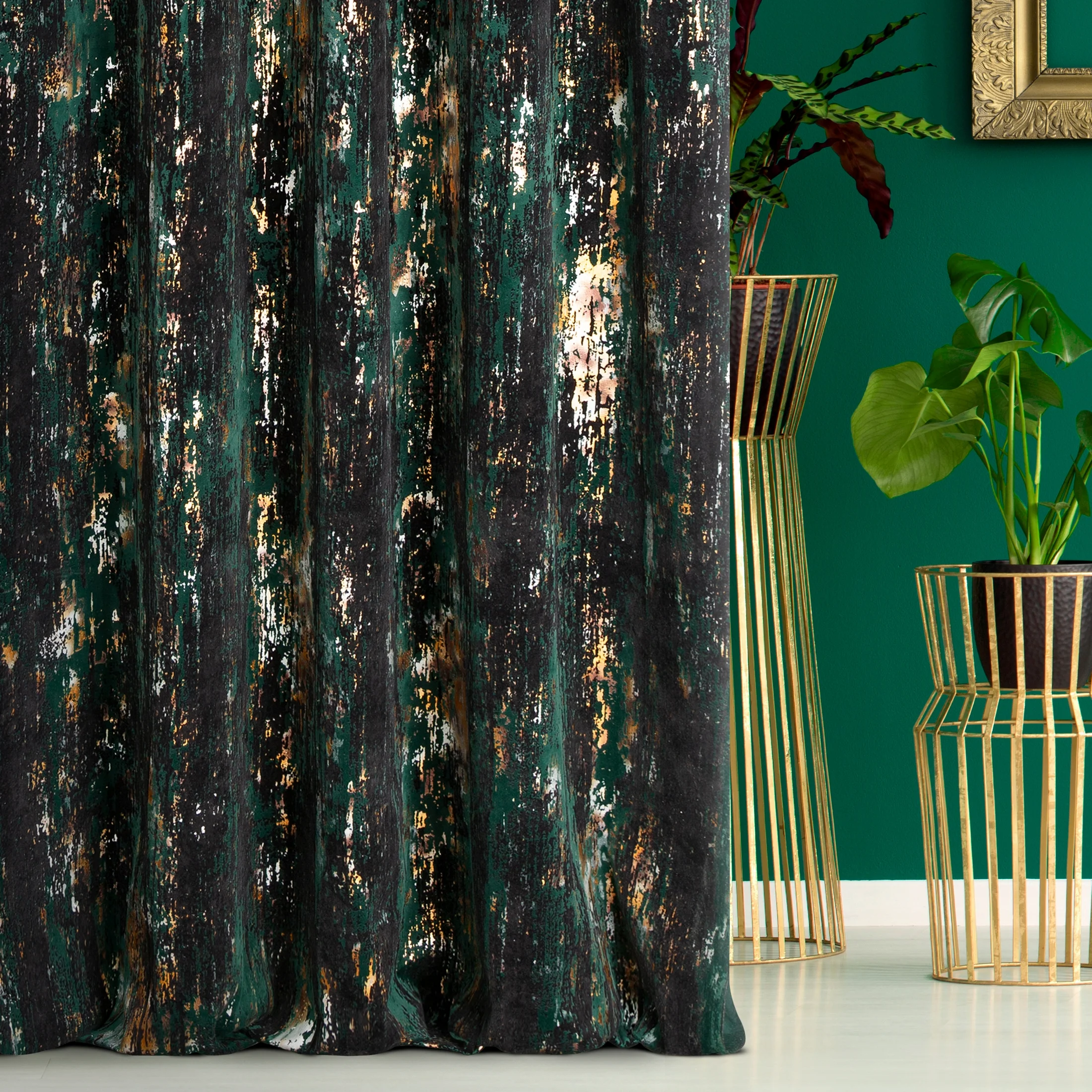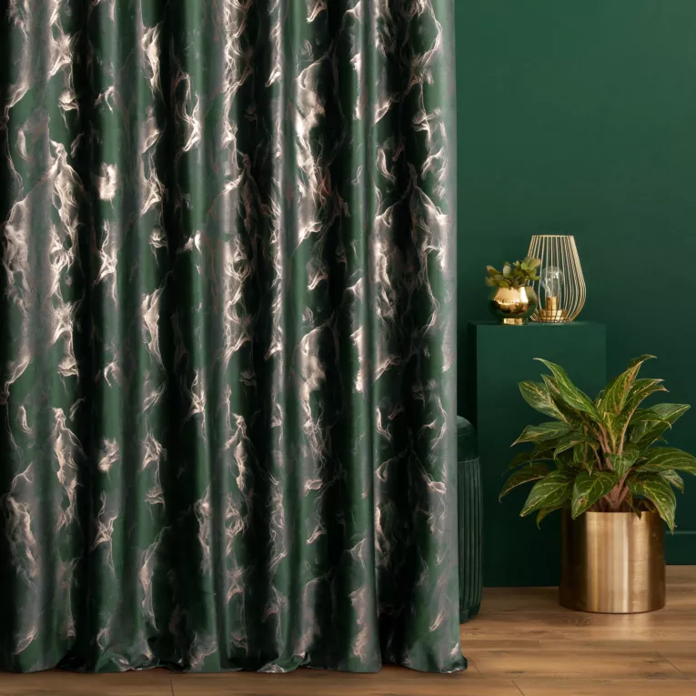 Tkanina zasłonowa welwetowa zdobiona złotym marmurkowym wzorem Eurofirany