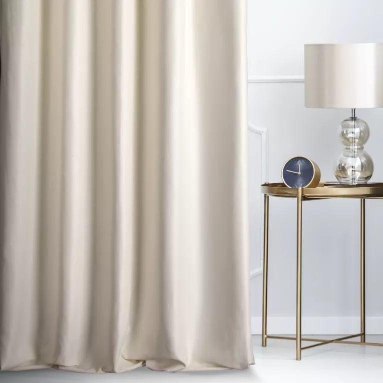Gładka tkanina z ozdobnym, strukturalnym splotem i dodatkiem błyszczącej nici. Idealnie pasuje do eleganckich wnętrz w stylu glamour. Miękka, lejąca struktura materiału sprawia, że tkanina po zawieszeniu pięknie się prezentuje, delikatnie otulając okno.  Dzięki swojemu połyskowi pięknie rozświetli każde wnętrze.