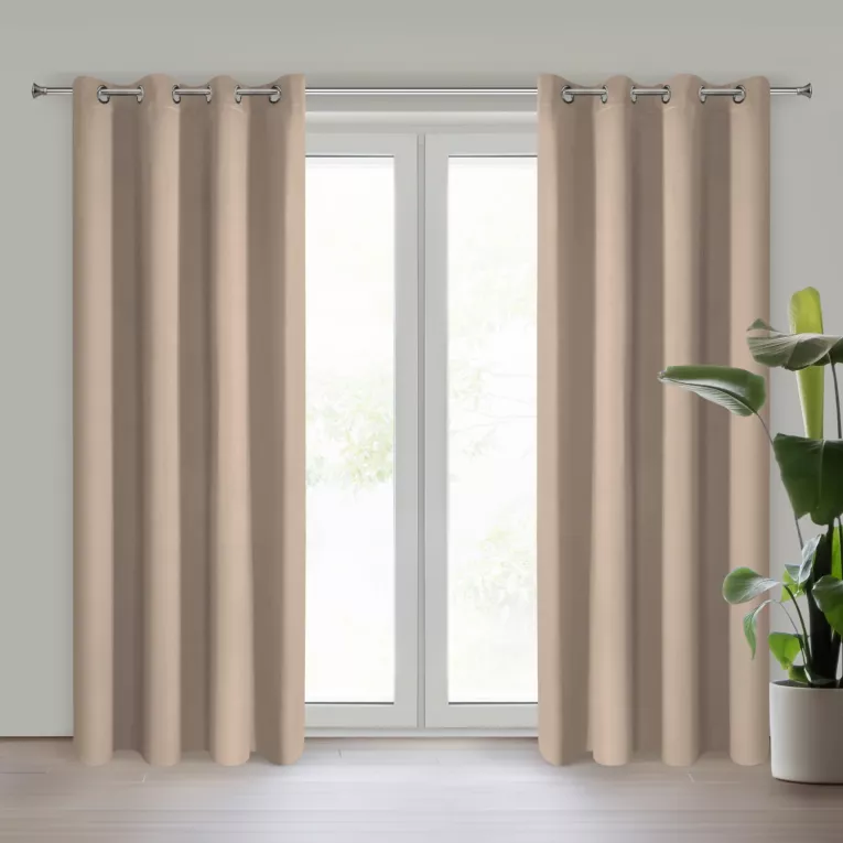 Zasłona beżowa zaciemniająca gładka półmatowa 135x250 cm przelotka LOGAN Eurofirany