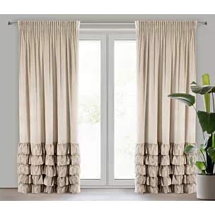 Zasłona beżowa zdobiona falbanami z welwetu 140x270 cm tasma DANI Eurofirany