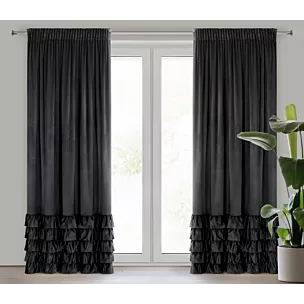 Stylowa i elegancka zasłona DANI, która stanie się wyjątkowym akcentem w Twoim wnętrzu. Wykonana z luksusowego welwetu, zasłona zdobiona jest pięcioma falbanami na dolnej części tkaniny, co nadaje jej unikalny i romantyczny charakter.