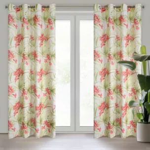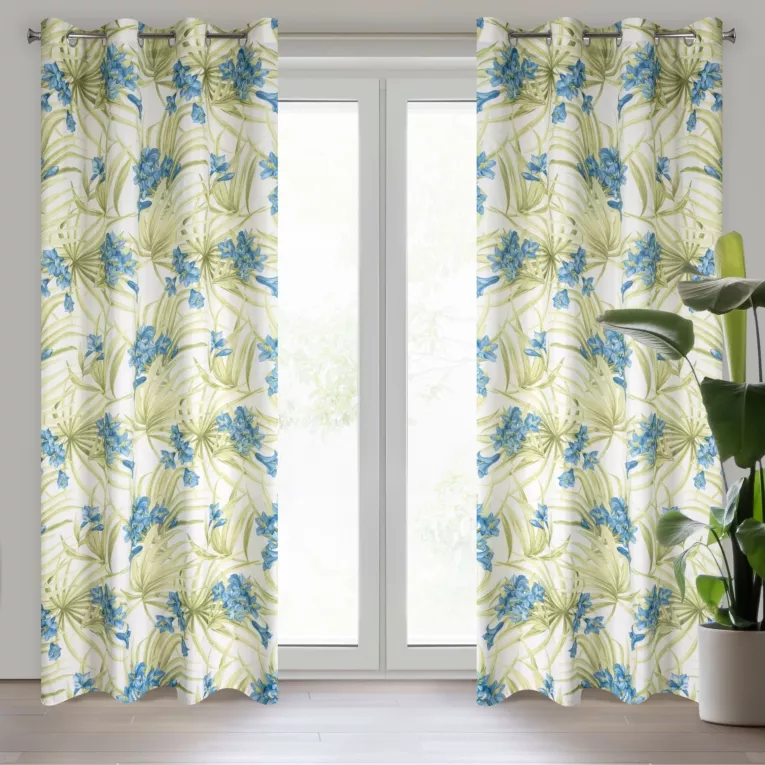 Piękna zasłona dekoracyjna MARI z wysokiej jakości mikrofibry jest ciekawą propozycją na dekorację okna w stylu botanic. Lekka tkanina  ozdobiona jest na całej powierzchni nadrukiem z motywem efektownych kwiatów . Taki wzór pięknie prezentować się będzie we wnętrzach w nowoczesnej odsłonie klasycznych wnętrz z nutą romantyzmu. Miękka mikrofibra chroni wnętrze przed nadmiarem światła z zewnątrz ale nie zaciemnia go całkowicie i jednoczesnie gwarantuje poczucie prywatności wnętrza. Zastosowane przelotki o dużej średnicy pozwalają upiąć zasłony na każdym karniszu drążkowym.