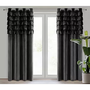 Stylowa i elegancka zasłona AURA, która stanie się wyjątkowym akcentem w Twoim wnętrzu. Wykonana z luksusowego welwetu, zasłona zdobiona jest pięcioma falbanami na górnej części tkaniny, co nadaje jej unikalny i romantyczny charakter.