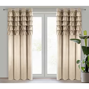 Zasłona ciemnobeżowa zdobiona falbanami z welwetu 140x250 cm przelotka AURA Eurofirany