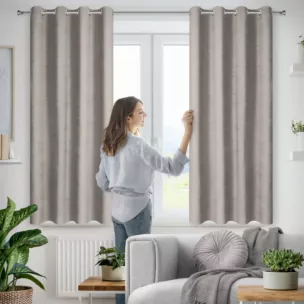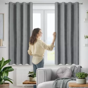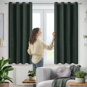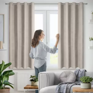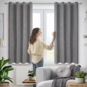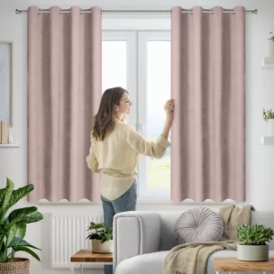 Zasłona Dora z tkaniny o welurowej strukturze to prosta, a zarazem elegancka i nowoczesna dekoracja okienna. Jednokolorowa dekoracja okienna to propozycja, która sprawdza się w każdym wnętrzu i pasuje do każdej jego aranżacji. Metalowe przelotki i dają możliwość zawieszenia zasłony na tradycyjnym karniszu typu drążek/rurka, taki sposób zawieszenia pozwala na sprawną zmianę dekoracji.  Zasłona Dora posiada średni stopień zaciemnienia, dzięki czemu zapewni prywatność i osłoni wnętrze przed bezpośrednim słońcem.