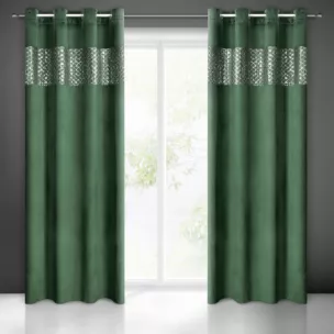 Zasłona ciemnozielono, srebrna z lśniącego welwetu z aplikacja z cekinów 140x250 cm przelotka MARGOT Eurofirany