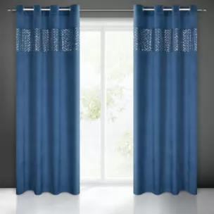 Aksamitny w dotyku, szlachetny, delikatnie połyskujący, miękki welwet, to tkanina, która na zasłonach prezentuje się wyjątkowo pięknie. Elegancka, jednokolorowa zasłona MARGOT z błyszczącym nadrukiem, uszyta z tkaniny welurowej, to propozycja dla miłośników dobrego smaku i najwyższej jakości. Efektowna aplikacja z cekinów tworzących wzór łuski nadaje całości niezwykłego chcarakteru. Ta efektowna zasłona chroni wnętrze przed nadmiarem światła z zewnątrz i pozwala cieszyć sie prywatnością. Zastosowany system szerokich przelotek umożliwia upięcie zasłony na niemal każdym karniszu drążkowy.