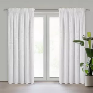 Zasłona gotowa REINA z kolekcji Eva Minge, uszyta z delikatnej i zwiewnej tkaniny szyfonowej, to elegancki  element dekoracyjny. Zdobiona moherową nicią, która tworzy subtelne i miękkie akcenty, nadaje zasłonie wyjątkowej struktury i przytulnego charakteru. Dodatek błyszczącej nici wplecionej w tkaninę dodaje delikatnego połysku, który pięknie mieni się w świetle, podkreślając luksusowy wygląd zasłony. Zastosowanie taśmy marszczącej pozwala na równomierne ułożenie tkaniny na karniszu. To idealny wybór dla osób poszukujących finezyjnego i designerskiego akcentu w swoim wnętrzu.
