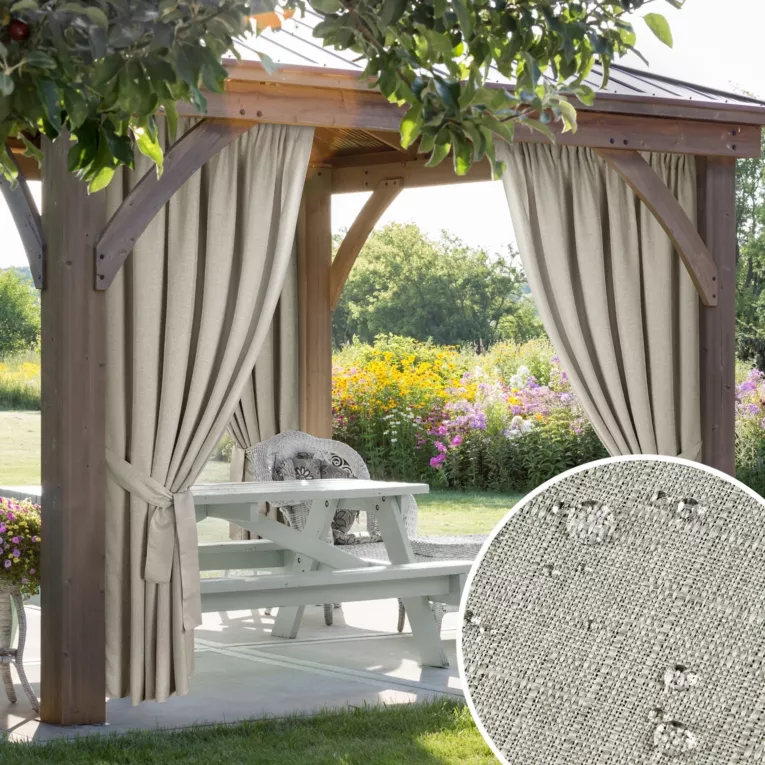 Zasłona GARDEN na taras to praktyczne i funkcjonalne rozwiązanie, które zapewnia ochronę przed niekorzystnymi warunkami atmosferycznymi i jednocześnie umożliwia regulowanie ilości światła i prywatności na zewnątrz pomieszczenia. Tkanina wodoodporna gwarantuje, że zasłona będzie odporna na deszcz, wilgoć oraz inne czynniki atmosferyczne, co pozwala na jej stosowanie na zewnątrz bez obawy o szybkie zniszczenie czy utratę estetyki. Dzięki temu taras lub balkon mogą być wykorzystywane przez większą część roku, nawet w przypadku niesprzyjającej pogody. Praktyczny i wygodny tunel służący do mocowania, sprawia, że zarówno zawieszenie jak i zmiana zasłon trwa tylko krótką chwilę. Ponadto tunel daje możliwość wygodnego zasuwania i rozsuwania w zależności od zmieniających się warunków atmosferycznych. Nowoczesny wygląd sprawia, że sprawdzi się w każdym typie altany, a praktyczna szarfa o długości 145 cm, dostępna w komplecie, daje możliwość efektownego podwiązania zasłony. Takie zasłony są również dostępne w różnorodnych wzorach, kolorach i stylach, co pozwala dopasować je do indywidualnych preferencji estetycznych oraz aranżacji tarasu czy balkonu.