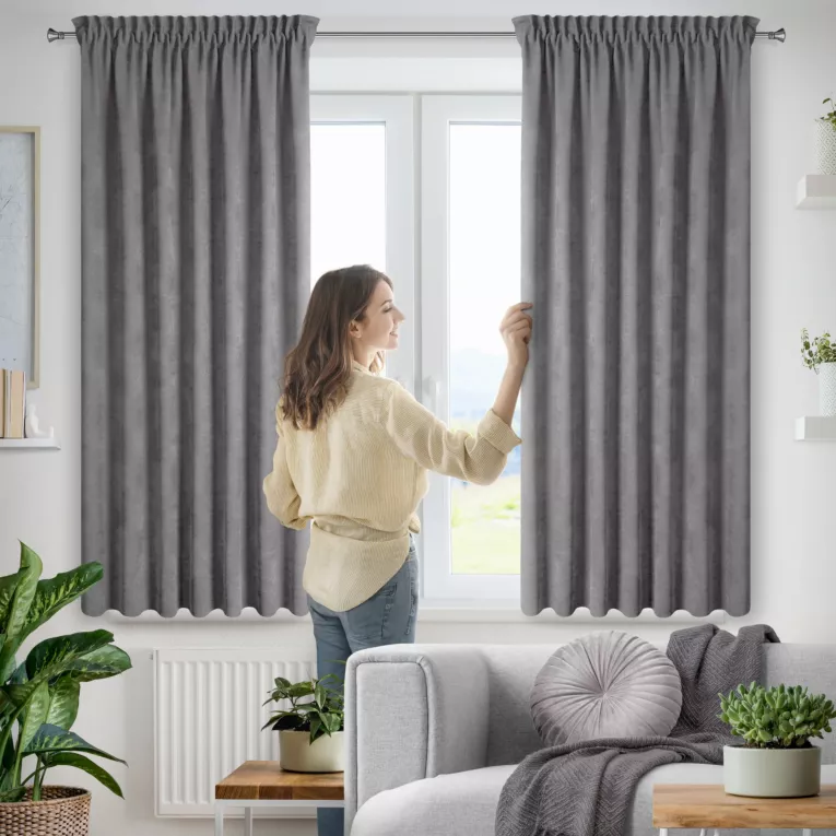 Zasłona grafitowa z tkaniny welurowej 140x175 cm taśma - Dora Eurofirany